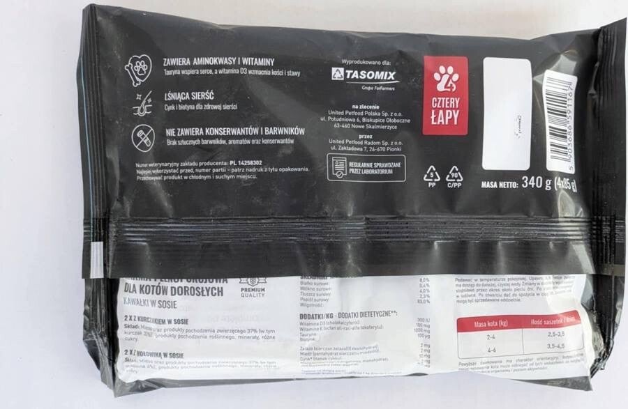 Karma mokra dla kota saszetki Cztery Łapy Premium 4x85g